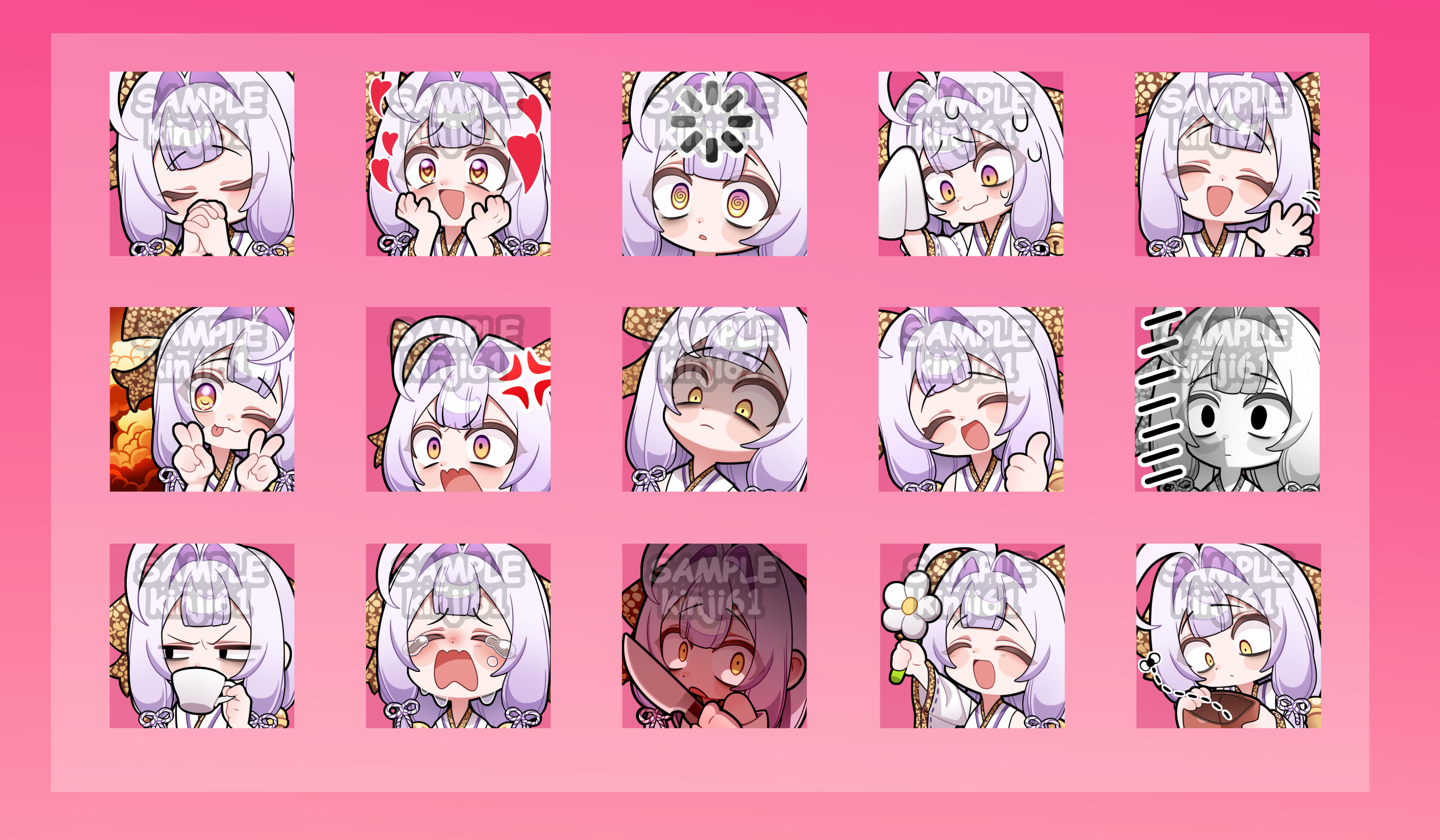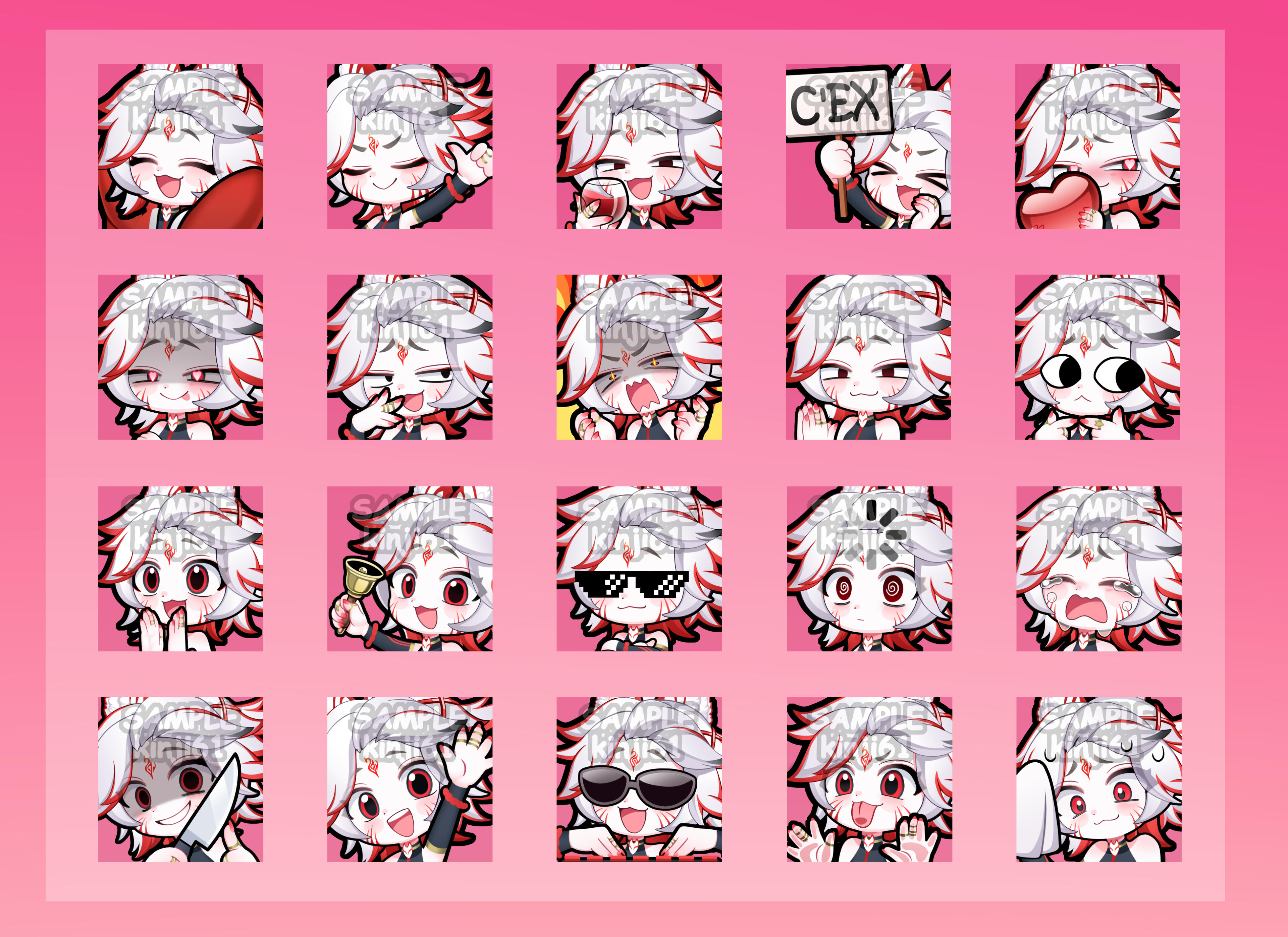 Default resolution for each emote is 500 x 500 300 dpi. PNG format.